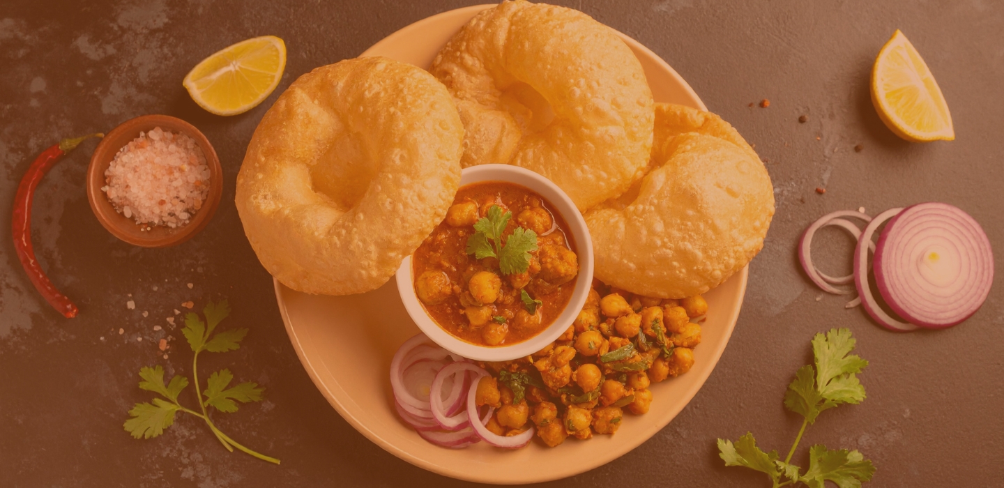 Spicy, flavorful chickpea curry served with soft and fluffy bhature.