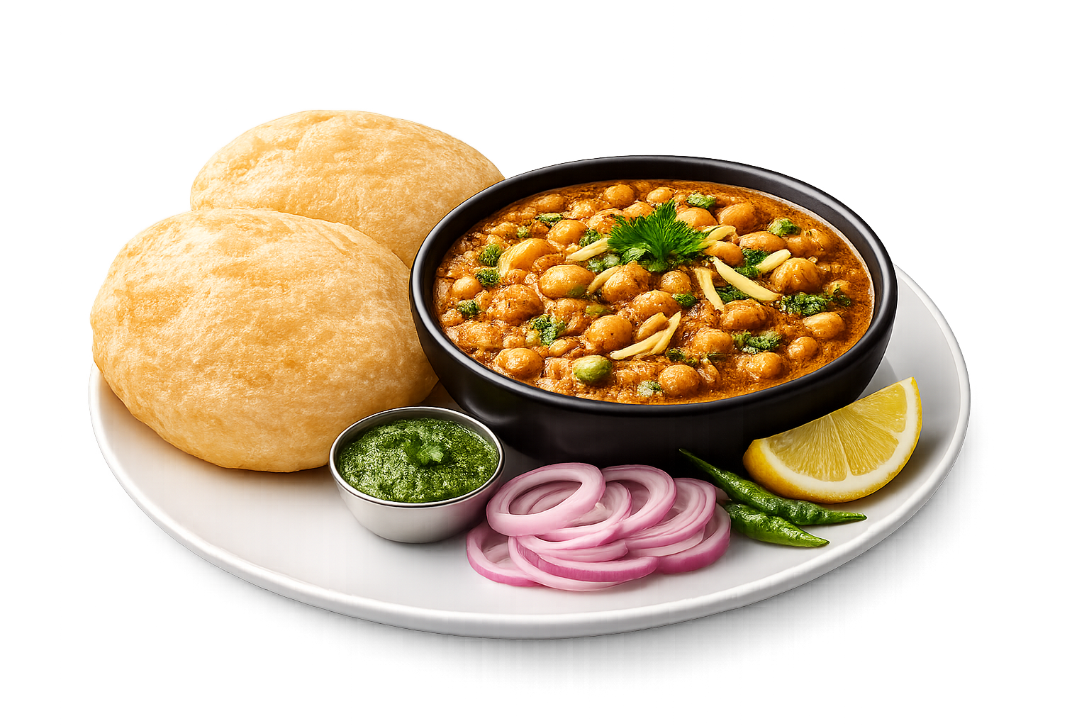 Prepared with traditional North Indian spices, slow-cooked chole and perfectly fried bhature make it ideal for weddings, parties, and festive occasions. Served with fresh salad, green chutney, and pickle for a complete experience.