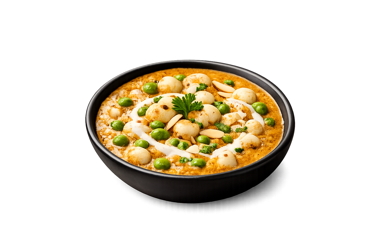 A creamy North Indian delicacy made with green peas and roasted makhana.